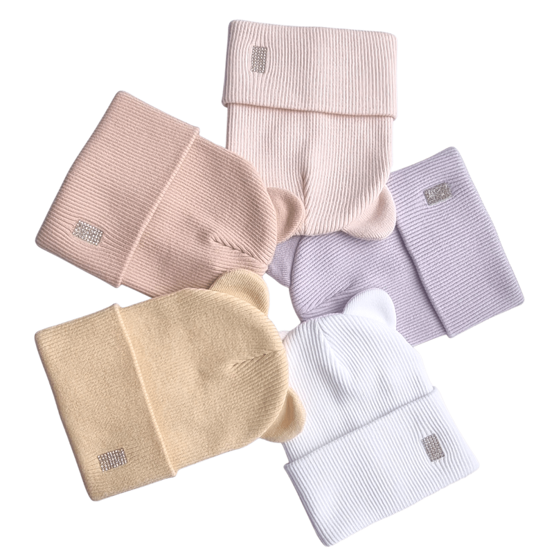 Детская шапочка с ушками для девочек 1-3 лет. Двойная вязка из мягкой стрейч-вискозы, Шапочка очень мягкая, удобная. Отделка камушками. р. 46 (9 - 18 мес) высота с подворотом 18 см, ширина по низу 14,5-15 см; р. 48 (1,5 - 3 года) высота с подворотом 19 см, ширина по низу 15-15,5 см; р. 52 (3 - 6 лет) высота с подворотом 20 см, ширина по низу 16-16,5 см; *Отворот можно регулировать, не пришит