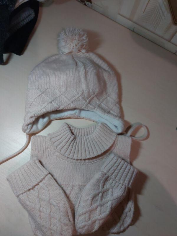 хорошее состояние возраст 6-12умесяц,объем головы 46-48, шапка+перчатки,Без манишки