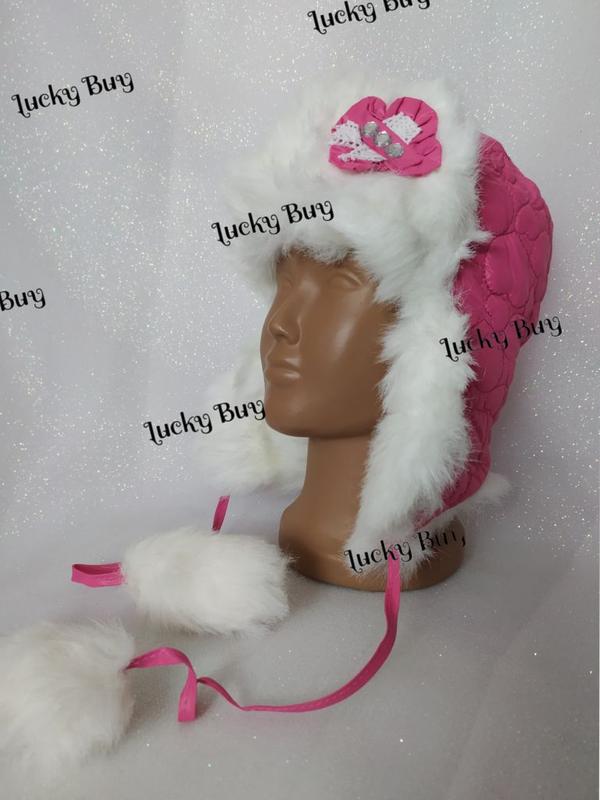 Б/н0344 Детская розовая зимняя шапка на завязке. Подклад хлопок. На завязке. Завязки с бубонами. Склад на фото. Размер 50,52,54 260