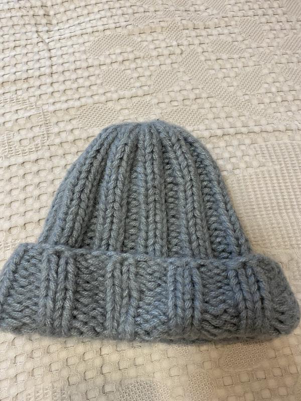 Очень стильная шапка из крупной вязки Цвет серый Состояние идеальны Длина с подворотом 24 Без подворота 30