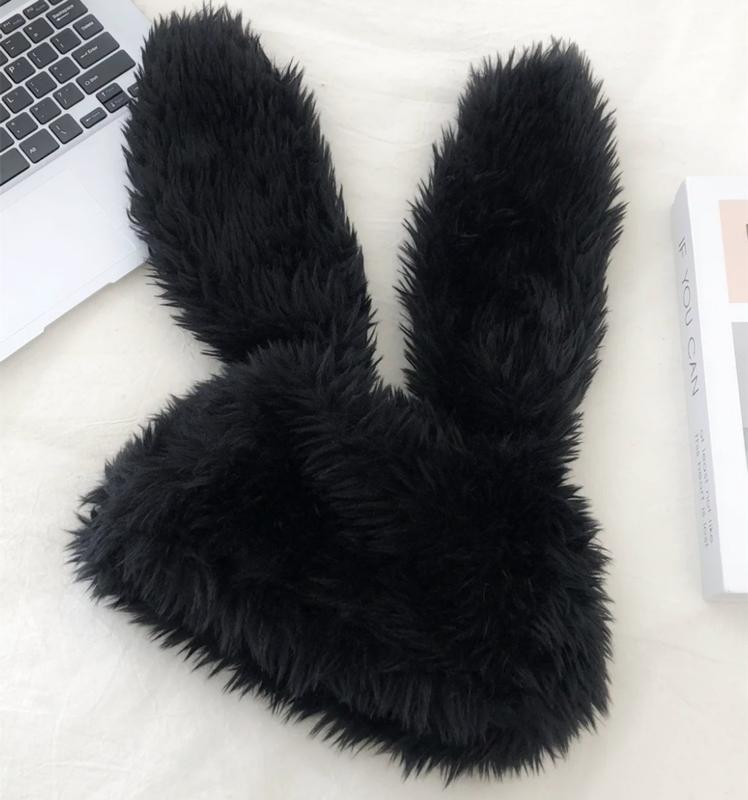 Шапка заяц (кролик) с ушками и кулиской черный, унисекс wuke one size
