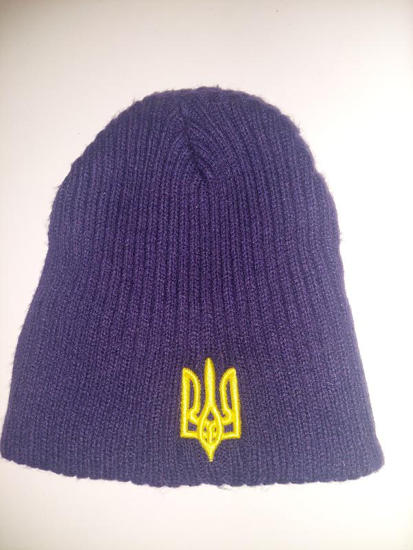 Шапка темно синего цвета. С патриотической вышивкой-Украинский трезубец, и флаг Украины.