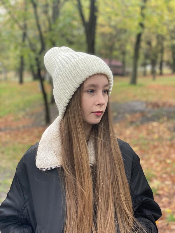 Вʼязана зимова шапка біні жіноча тепла ручної роботи у молочному кольорі ( в наявності)