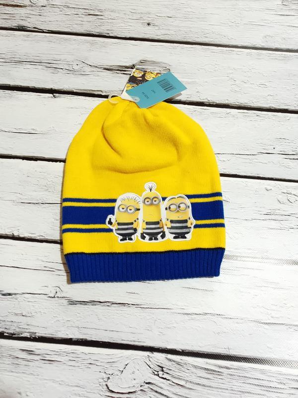 Теплая осень зимняя детская шапка на мальчика шапочка бини на осень зиму с миньонами