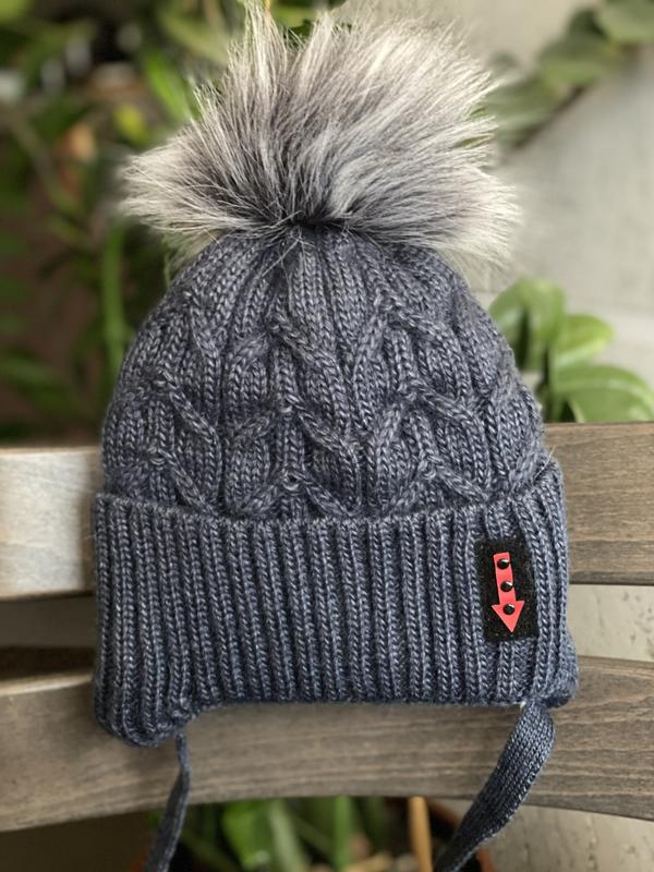 Шапочка на флисе с баффом, Большой помпон,серого цвета