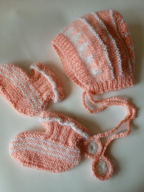 набор для малышки ручной работы, из мохера, нежный, мягкий, , нежный, теплый, цвет розовый с белым
