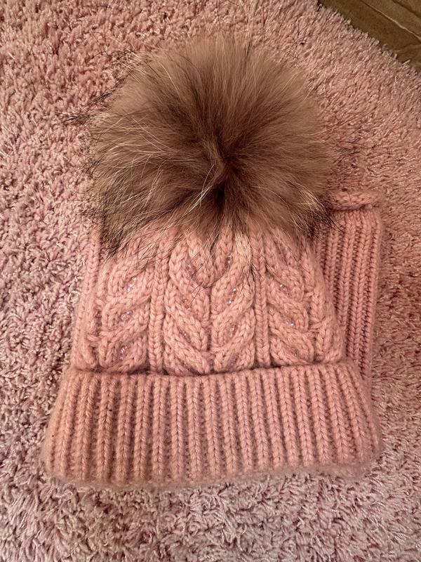 Теплый зимний набор, шапочка и хомут с камушками на девочку 5-8 лет Очень красивая и теплая в середине на флисе Покусали дорого. Высокое качество. Цвет - пудра Состояние- новой