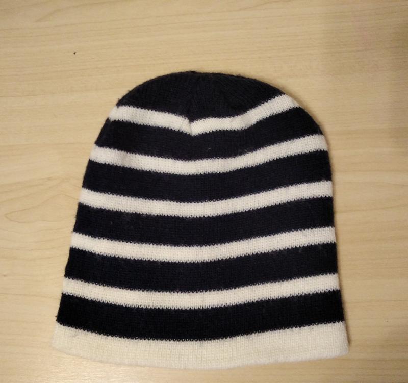 шапка в черно- белую полоску, два слоя трикотажа, мягушка и приятная размер- высота 19 см, окружность 48-54