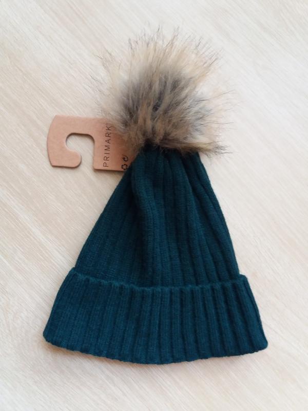 Шапка смарагдового кольору з помпоном від бренду primark