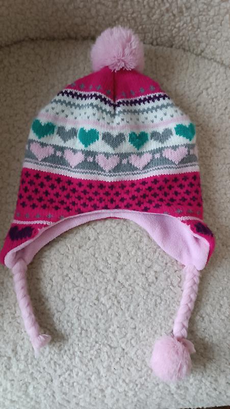 Шапка с узорами, утеплена флисом. На возраст 2-3 р.