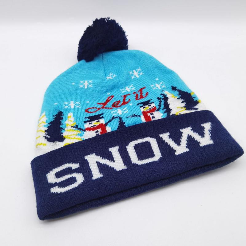 Новогодняя шапка с led подсветкой для взрослых и детей с принтом снеговик
