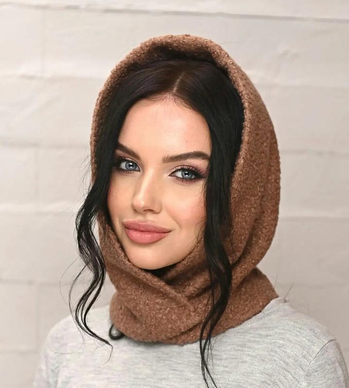 Жіночий капюшон із тканини букле — це модна та стильна деталь, яка додасть затишності та комфорту вашому образу. Тканина букле відома своїм пухнастим і м'яким ворсом, який надає гарну текстуру виробу. Капюшон із цієї тканини може бути прекрасним доповненням до зимового пальто, куртки або светра. Колір: моко. Підкладка: фліс. Застібка: кнопки. Тип: капюшон. Склад: 50% поліестер, 48% нейлон, 2% еластан. Сезон: Осінь, Зима. Розмір: універсальний 54-59 см.