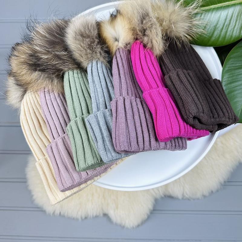 ❄️Шапка вязаная с натуральным помпоном. Подкладка флис. Красиво тянется. 📐Замеры: (52-54) - ширина 19,5 /высота 21,5