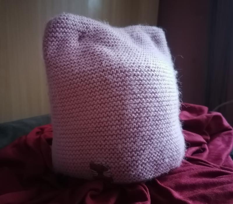 Шапка с кшачьими ушками. Очень теплая и удобная. Двойная с утеплителем. Нежно розового цвета.