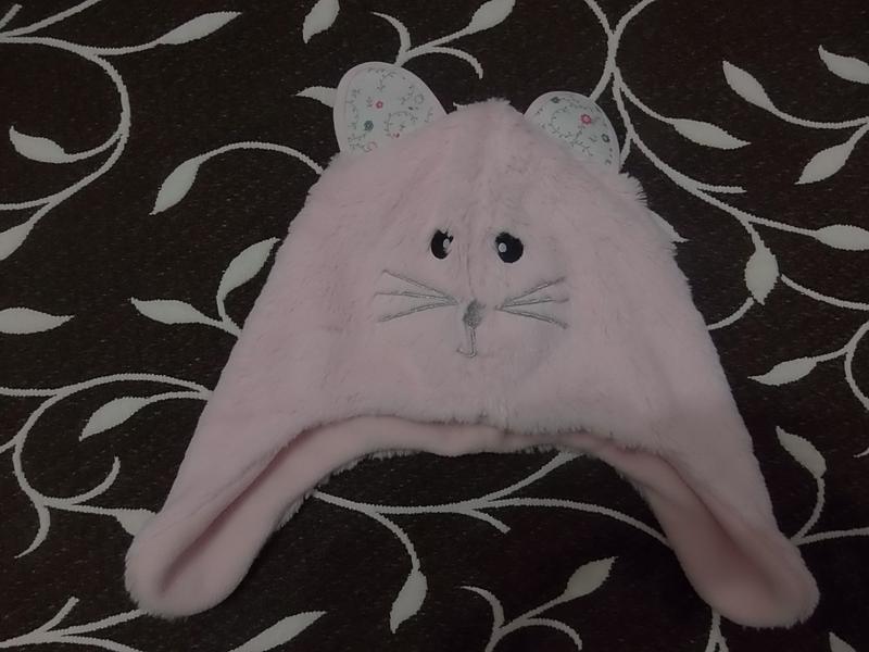 Шапка меховая на девочку 4-6 лет, фирмы George. Внутри на флисе. Замеры: длина по середине 19 см, длина с ушками 29 см, полуобхват посередине 25 см.