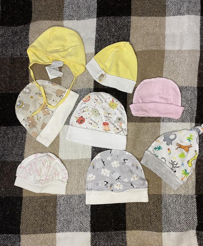Набор шапочек для девочки или мальчика. Размеры разные: от новорожденного до 6 месяцев. Половина из них совершенно новые. Продается только набором.