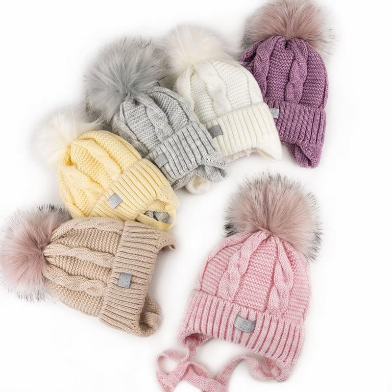 Зимняя шапочка с меховым помпоном на возраст 6-12 мес Помпон изготовлен из высококачественного искусственного меха На завязках