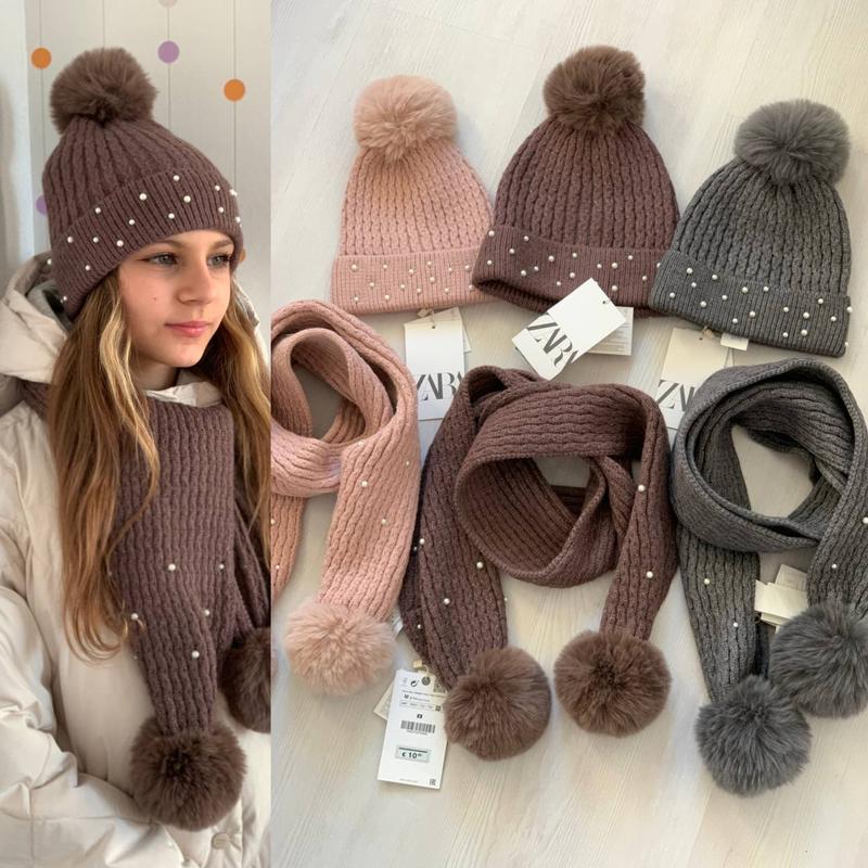 Детский набор шапка и шарф Zara для девочки в наличии размеры: ✅ 6-9 лет серая ✅ 10-14 лет шоколад