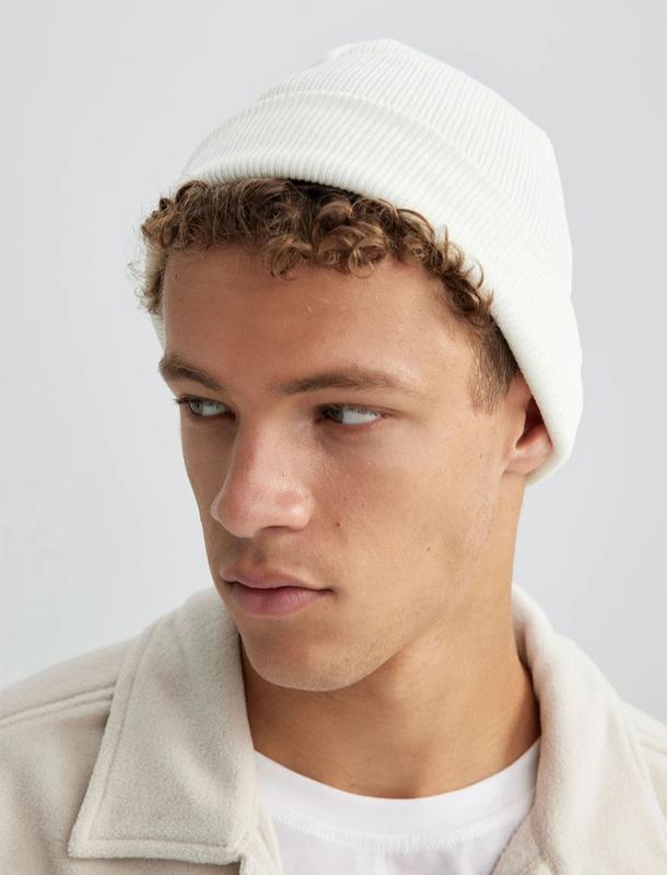Шапка DeFacto Original Новая с бирками Мужчине Демисизон Кежуал Белый цвет 100% Акрил Логотип Вязаная Размер UNI на бирке STD Обхват головы 55-58см.