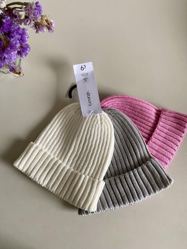 Набір чудових шапок від George Дуже ніжні кольори Красива вʼязка і стильний рубчик Розмір в наявності: 4-8р (маломірять на 1-4р), 8-12р (маломірять на 4-8р) Залишились: Сіра 8-12р Ціна 190 грн за одну шапку