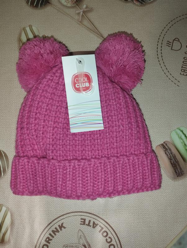Шапочка для девочки с двумя бумбонами Утеплена флисовой подкладкой Размер: 44-46