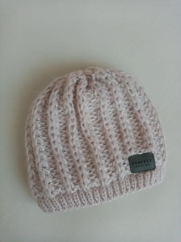 Теплая шапка бледно розового цвета, акрил, хорошо тянется