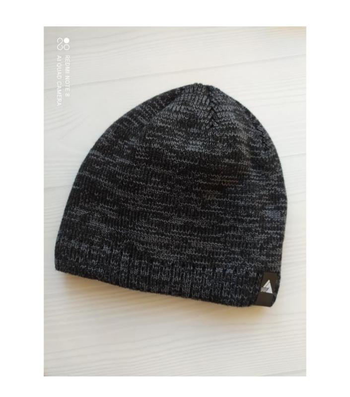 Тепла чоловіча шапка. Шапка подвійний в'язки плюс повністю на флісі Висота 20.5, ширина 23 см, добре тягнеться Меланжева. Колір ниток сірий+темносірий