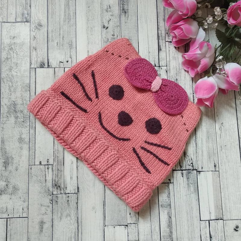 Вязаная шапка на девочку с кошачьими ушками ручная работа б/у, в очень хорошем состоянии Размер на 8-10 лет обхват головы 50-54 см глубина 20 см цвет розовый,коралловый пряжа акрил.