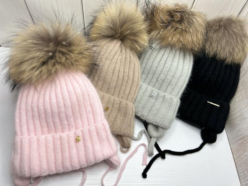 Дитяча зимова шапочка, материал- ангора, подкладка- флис, пумпон- енот. Размер стандарт- 2- 5 года. На завязках 🫶