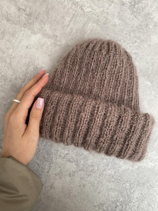 Пушистая шапочка такори шапка с подворотом широким пушистая шапочка мохер ручная работа