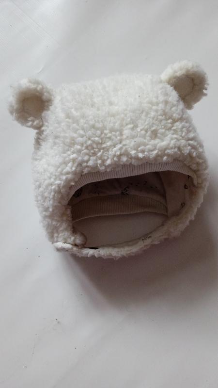 очень красивая, с ушками,теплая, подкладка коттон, застегивается на кнопки,6-9месяц