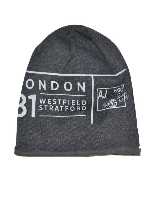 Шапка мальчику 1-4 лет одинарная с текстовым принтом 48/50