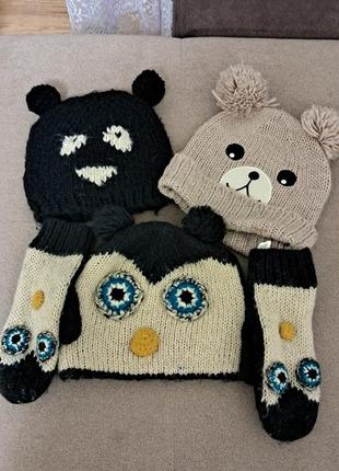 набор и две шапки (все вместе) в красивом состоянии интересные шапки + перчатки для девочек подростков один носбор шапка+перчатки и две шапки тоньше осень весна бренды TEZENIS, RESERVED (черная) Terranova(беж)