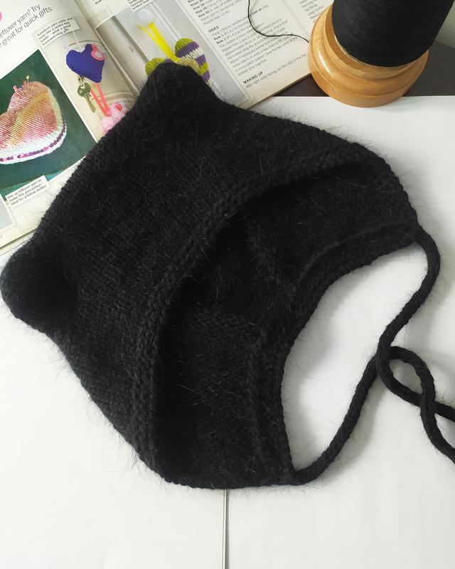 Модная и стильная шапочка - чепчик с ушками - связана с пушистой пряжи, ангоры или "пухую норки", подходит на взрослый размер 56-58. Моя работа спицами.