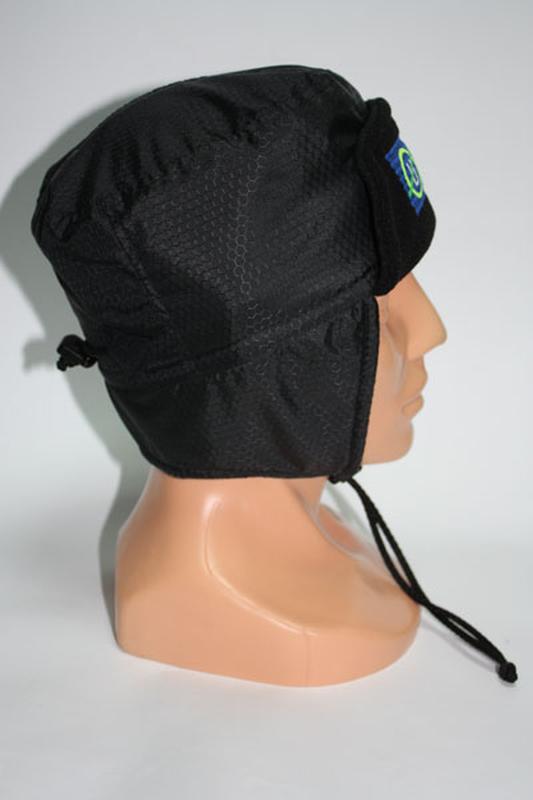 Новая шапка черного цвета из курточной ткани "таффета" на подкладке из флиса с отлетным пришивным козырьком, на обхват головы 47-52 и 50-56 см ( сзади регулируется шнуром с фиксатором ).