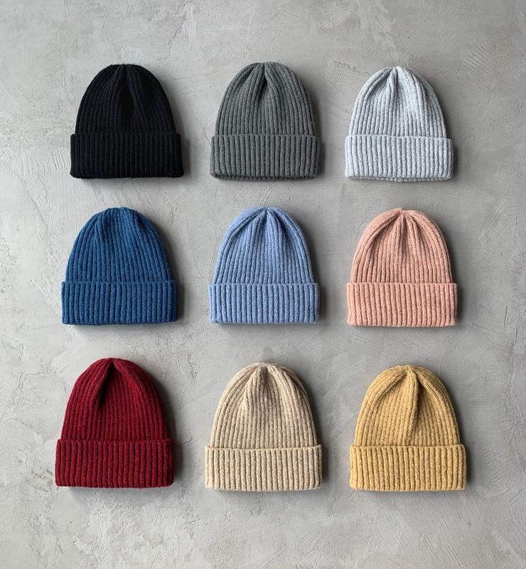 Шапка біні в рубчик шерсть з отворотом, підворотом, в’язана такорі лопата жіноча чоловіча...