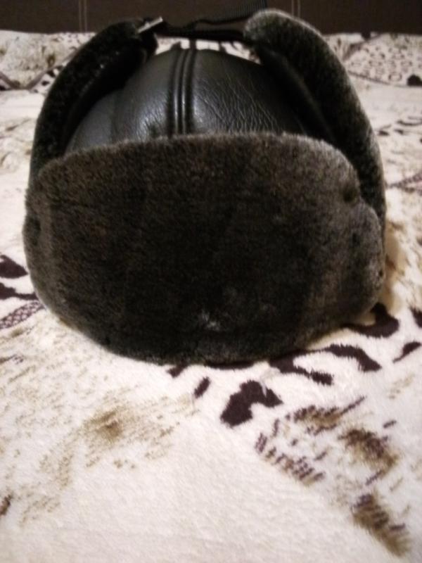 Шапка красивая, мягкая и очень теплая. Выглядит как новая. Эко кожа. Мех густой, гладкий, с серебристым отблеском. Внутри тоже мех, черный. Носить можно в разных вариантах.