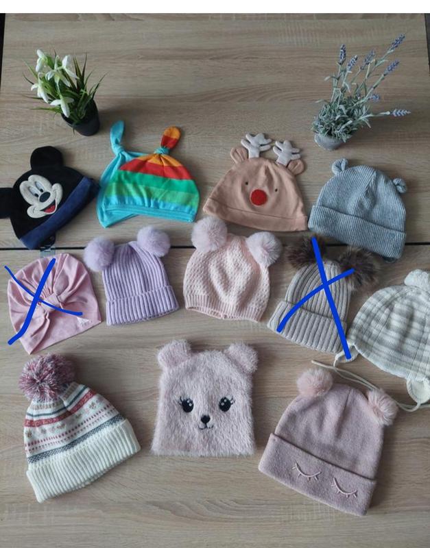 сверху вниз: 1й ряд: - Белая вязаная TU 44 размер, 12-18 мес - 30 грн - в полоску с завязками песочная Lenne - размер 48, идет до 9 мес - 55 грн 2й ряд: - коричневая вязаная фирмы Famo - 12-18 мес - 70 грн - разова вязаная Young dimension - до 2х лет - 40грн - с бубоном белая фирмы Matalan 2-4 года - 50 грн 3йряд: - с мики маусом Disney из тонкой вязки 2-4 года, размер 50 - 65грн - разова с бубоном primark 2-3 года, из тонкой вязки, нить блестит - 30 грн - связана с ушками с минными маусом Disney 2-4 года - 75 грн 4йряд: - разова с бабочкой H&M - размер 104 3-4 года - 75 грн - с жемчужинами весенняя 2-3роки - 75 грн замеры по каждой есть в отдельных обьявах