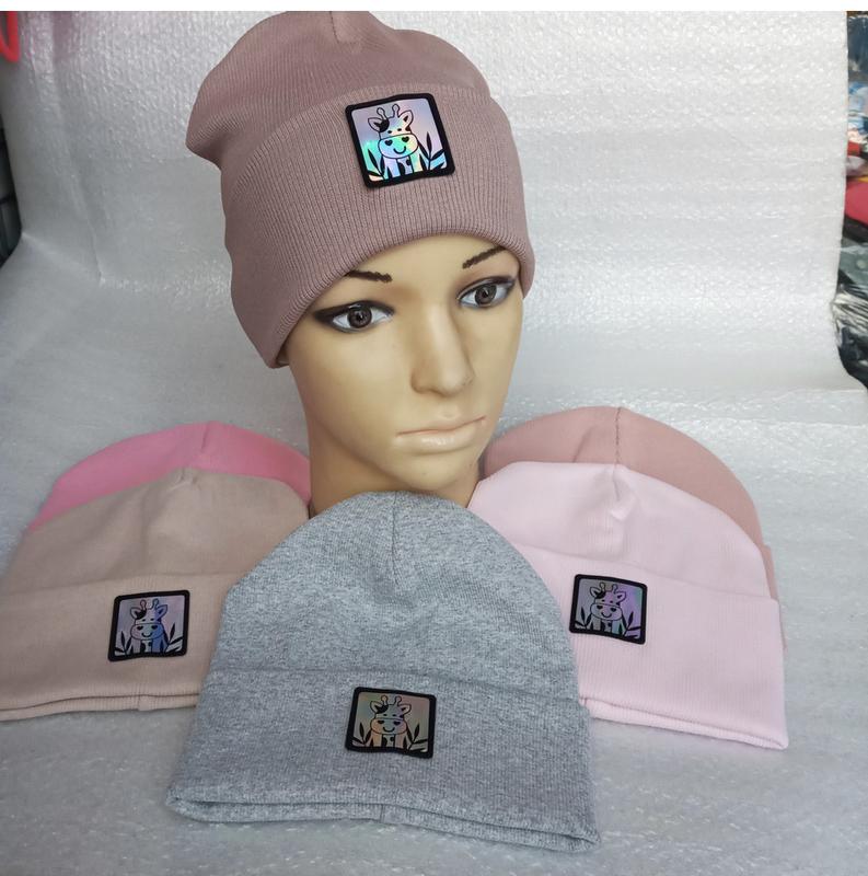 Шапочка для девочки трикотажная с отворотом на окружность головы 52-54 см
