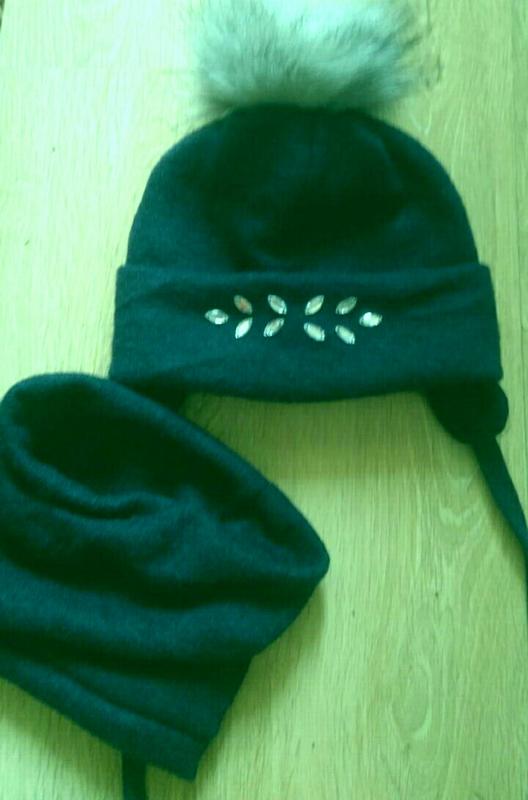 Шапка ангора на флісі. Бомбоном натуральний. Колір синьо сірий. Є різні розміри. Можна замовити з хомутиком