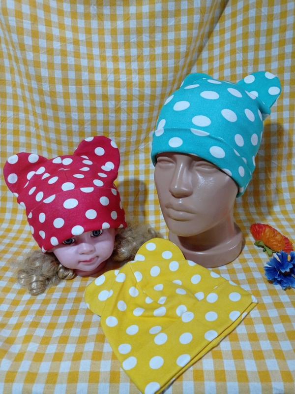 Шапки для девочек из трикотажа, производитель Украина,размер 48-52, примерно на 1,5-3 лет,двойные.