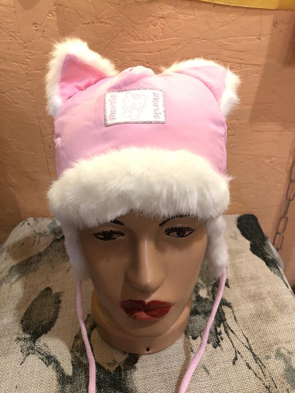 Шапка с ушками З вивороту утепленна хутром Размер: 46 Тканина: верх - поліестер; подкладка - 50% акрил; 50% полиэстер мех - 50% акрил; 50% полиэстер Цвет: белый/розовый