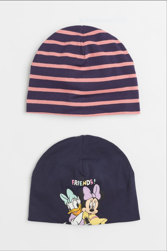 🔥 ВАЖЛИВО! 📦 Уточняйте наличие товара перед заказом 🚫 Через Rozetka тимчасово не відправляю 💳 Безопасное оформление с оплатой на карточку продавца Набор из 2 шапочек для девочки H&M Одна в полоску и одна узорчатая шапочка из мягкого двухслойного хлопкового джерси. Размер: 104/122 (3-7Y) Ціна-450 грн за комплект