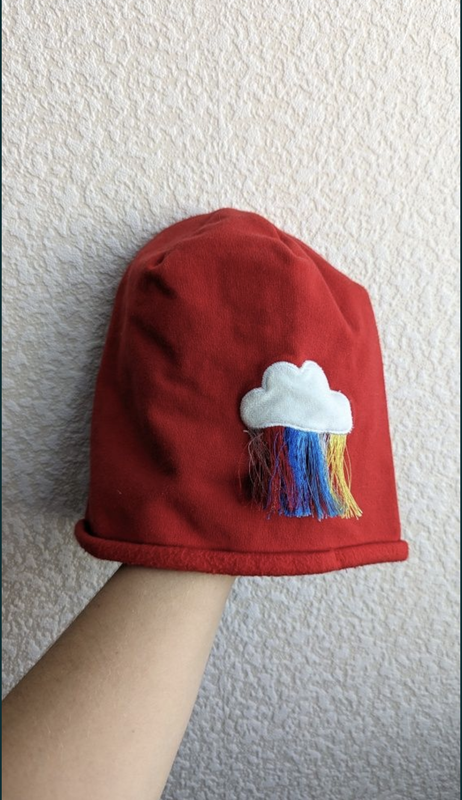 Яскрава червона шапочка з милою хмаринкою від Резерв, розмір дитячий М - глибина 22см, НО голови 23см, тепла і зручна, стан чудовий.