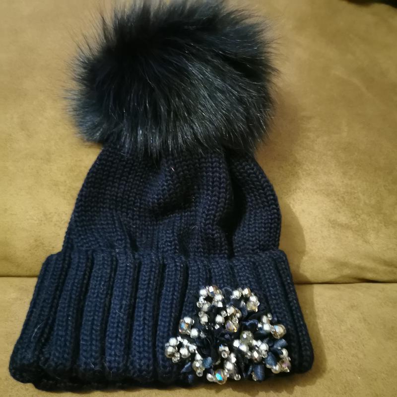 Дуже гарна шапка темно синього кольору. Виходила один раз з-за великої кількості шапок. Виробництво Італія. Хутро натуральне.