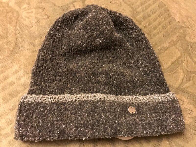 Класна шапка з люрексовим вкрапленням кольору срібла , розмір універсальний. Одношарова, та з грубших. Півоб'об'єм -26см, висота-23см.