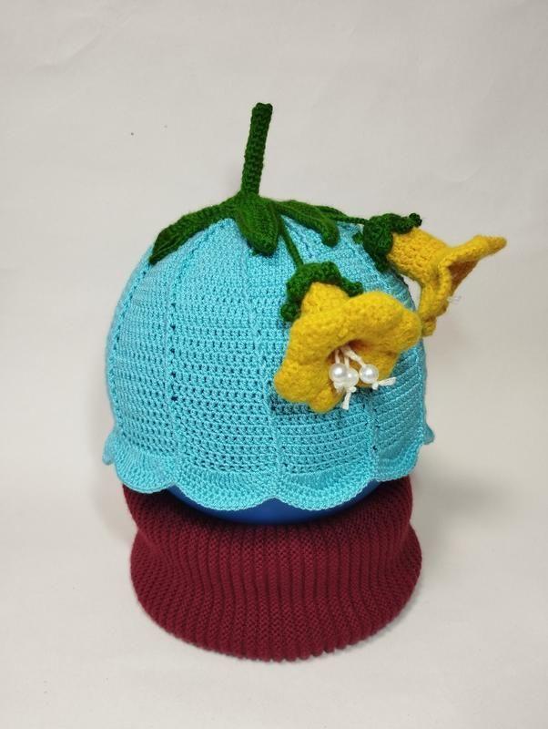 Дитяча літня шапочка з рельєфами, ручної в'язки