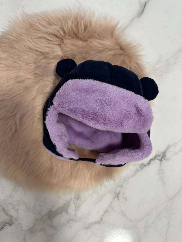 Классная шапка ушанка с мехом и ушками, на 18-36 мес, на липучке, состояние идеальное но только нужно козырек по бокам подшить, на втором фото видно, за счет этого и цена такая