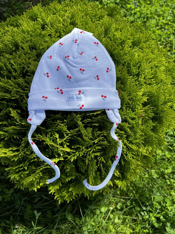 шапка на завязках тоненькая Вишеньки 40-42 размер