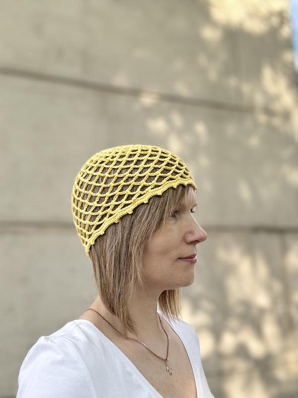 Стильна жіноча шапочка кроше - абсолютний хіт літа. Шапка сітка-павутинка звʼязана вручну з якісної мʼякої натуральної бавовни. Шапочка чепчик ніжна і комфортна до тіла, а також захищає від шкідливих сонячних променів. На фото Розмір 57-58 Довжина/висота шапочки 18см Колір жовтий Великий вибір кольорів/розмірів на замовлення, за запитом.